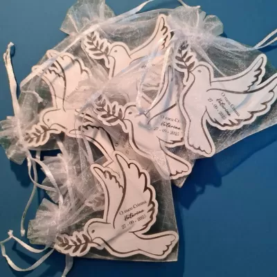 Foi um prazer desenvolver e produzir estas pombas magnéticas personalizadas para o Crisma da sua filha Katarina.