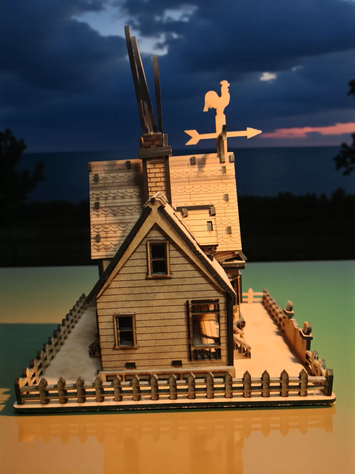 Réplica Perfeita: Da varanda acolhedora ao cata-vento de galo, cada elemento foi cuidadosamente reproduzido. Repare na riqueza de detalhes das tábuas e do telhado!