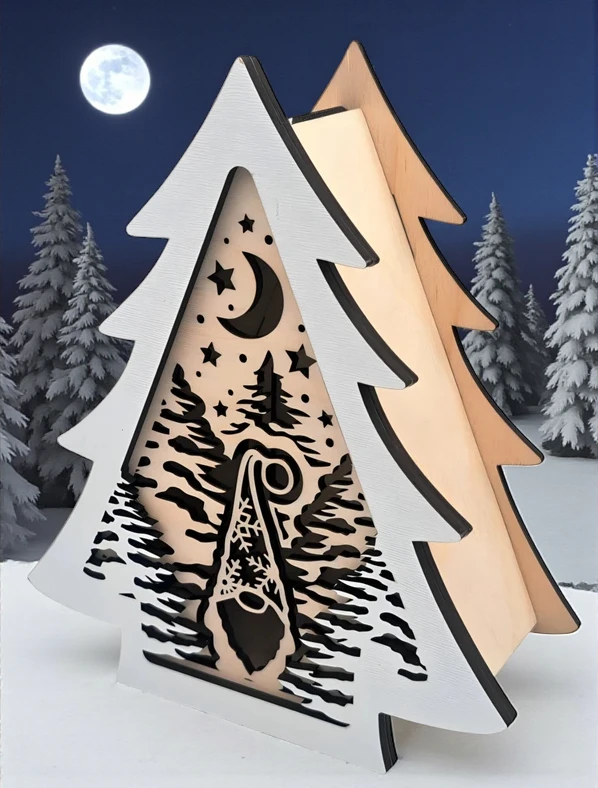 Design Envolvente: Escolha o seu cenário favorito – desde o acolhedor Boneco de Neve sob uma estrela-guia, o misterioso Gnomo da Floresta sob a lua, ou a elegante Rena no seu bosque iluminado.