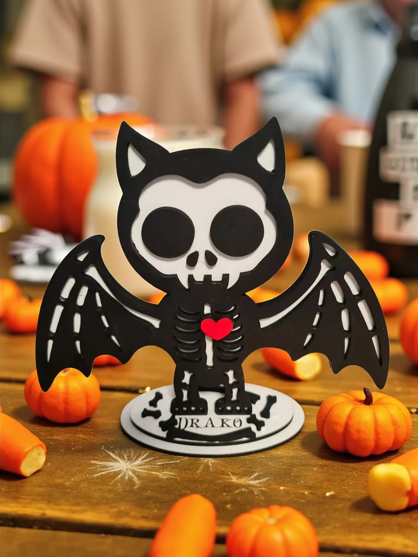 Design 3D em Camadas: Com um contraste marcante de preto e branco, e um toque inesperado com o coração vermelho, estes adornos saltam à vista e adicionam profundidade a qualquer mesa, prateleira ou cornija.