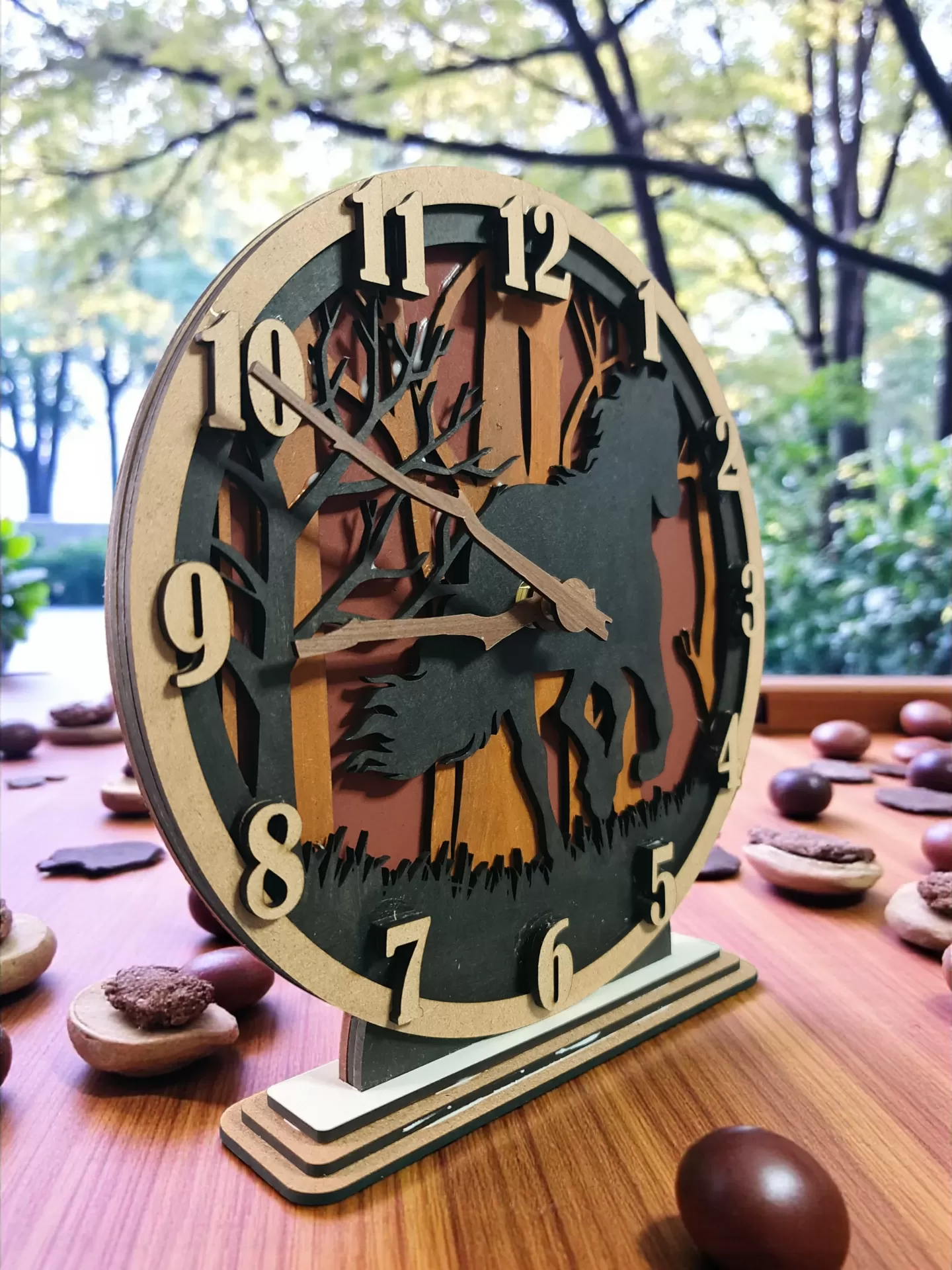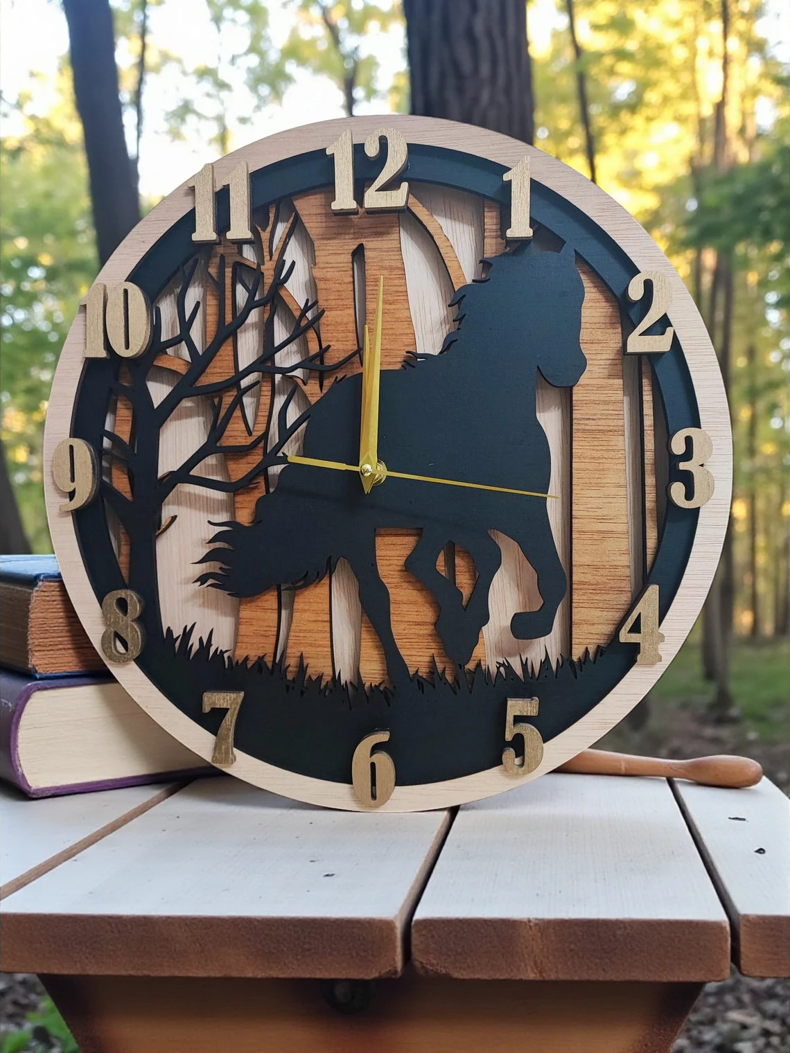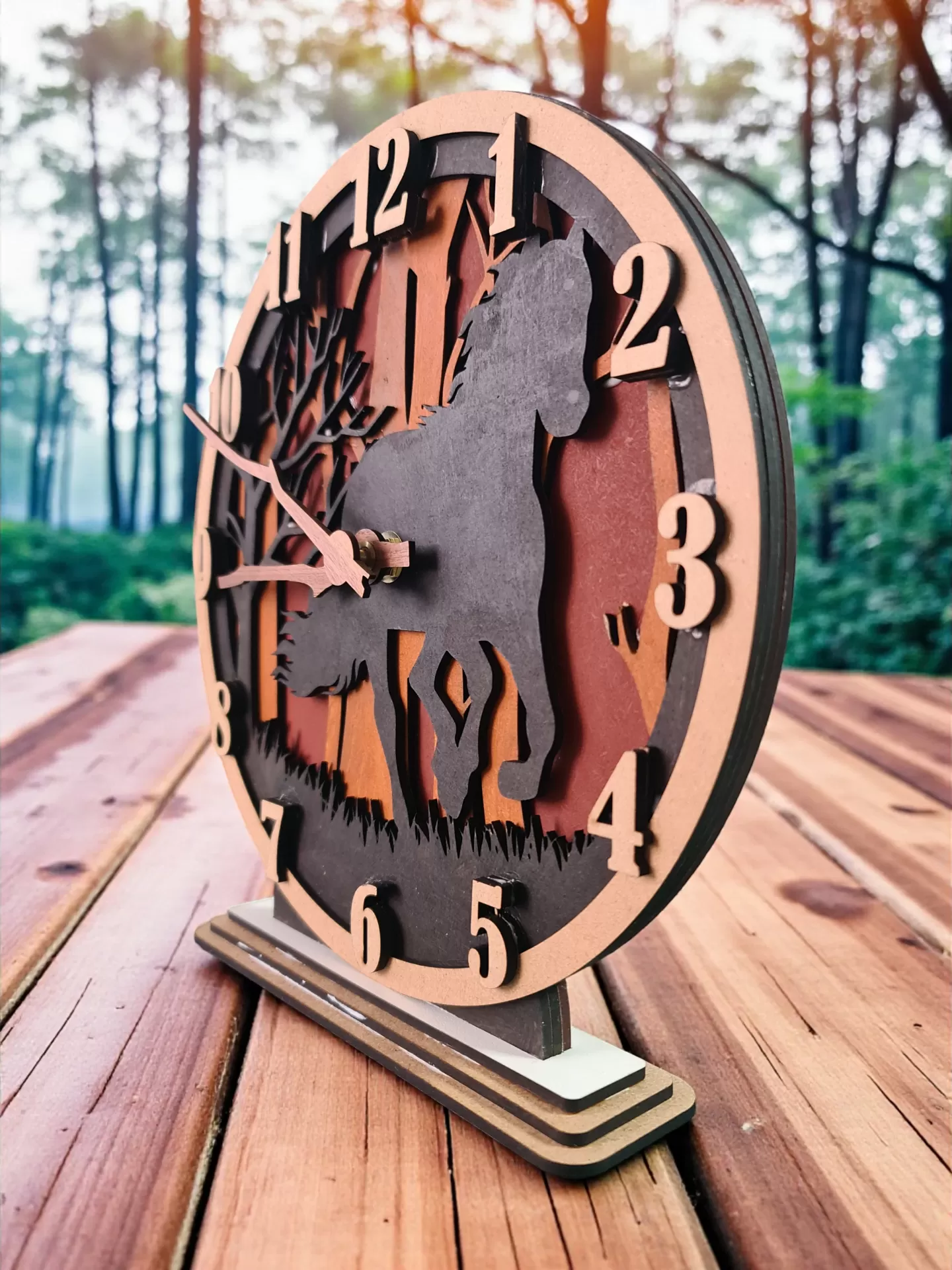 🐴 Relógio de Madeira Artesanal - Elegância em Camadas: