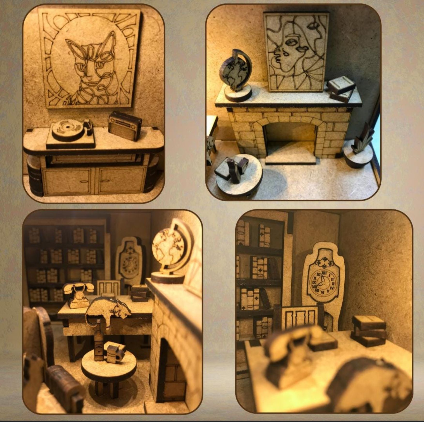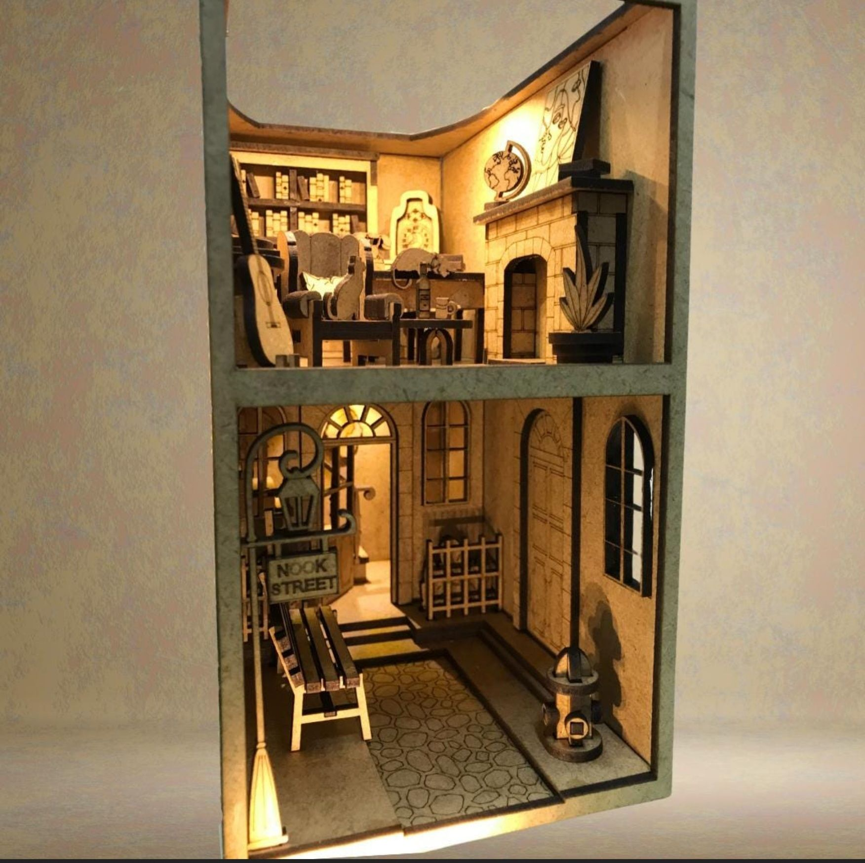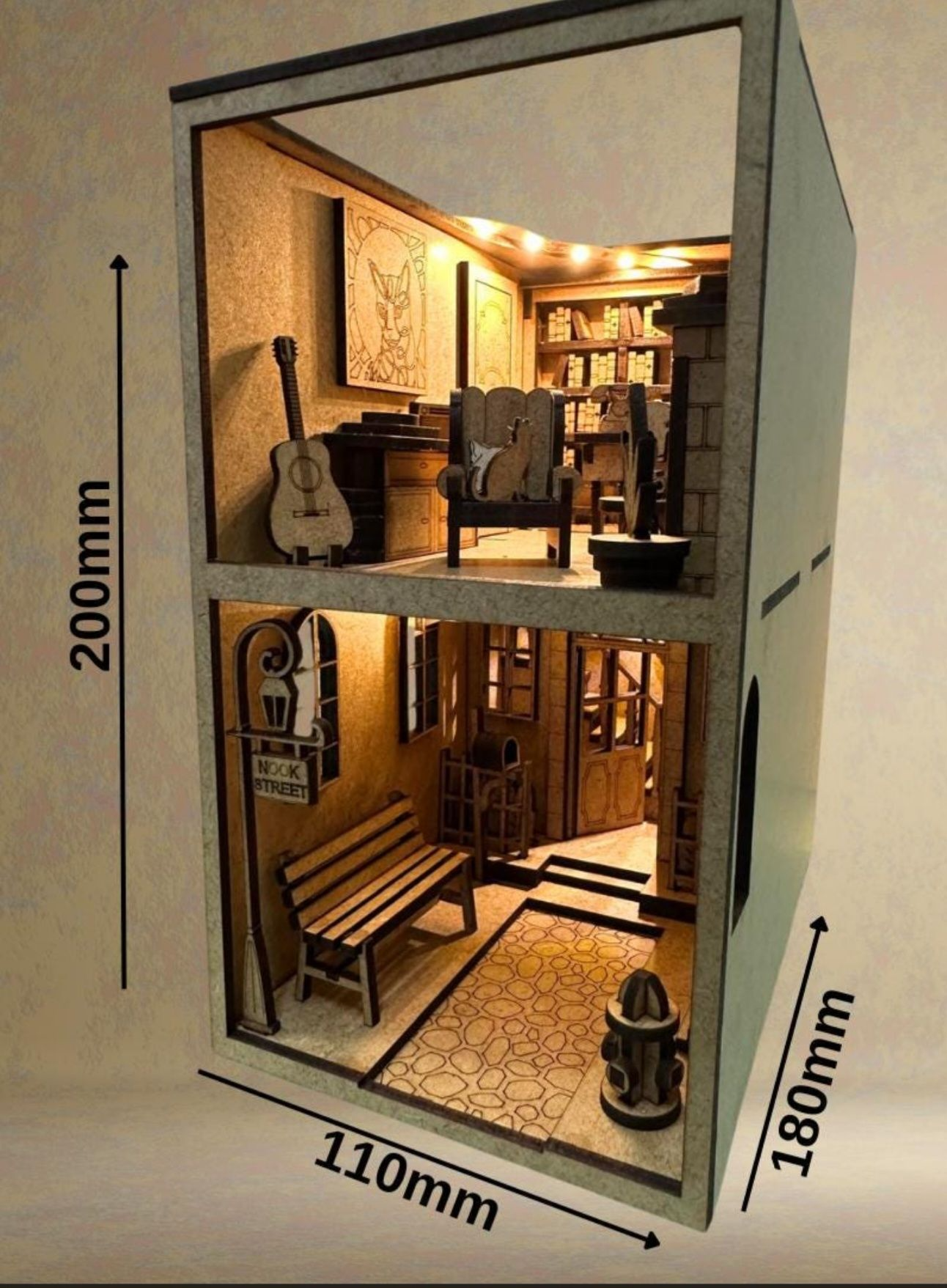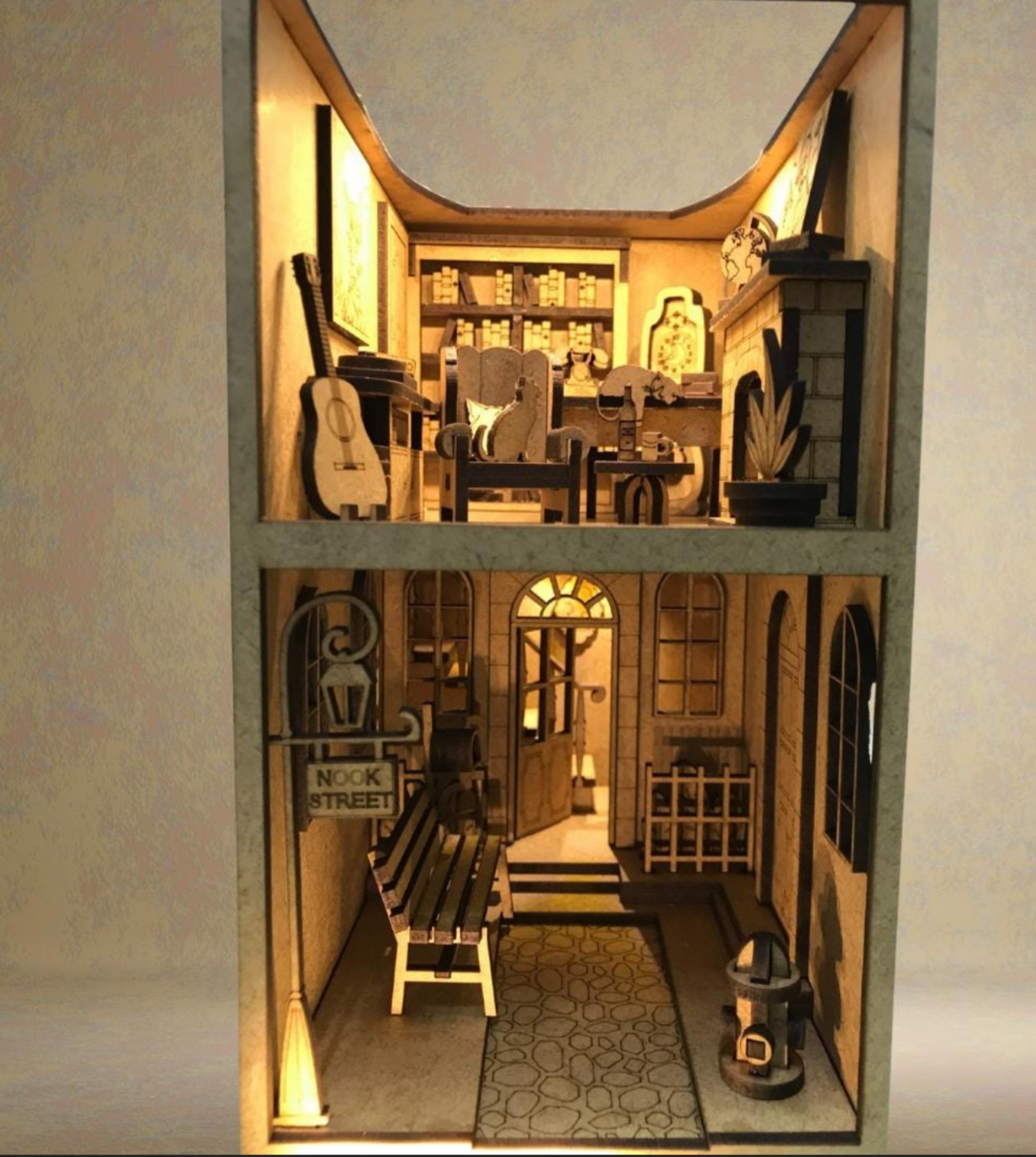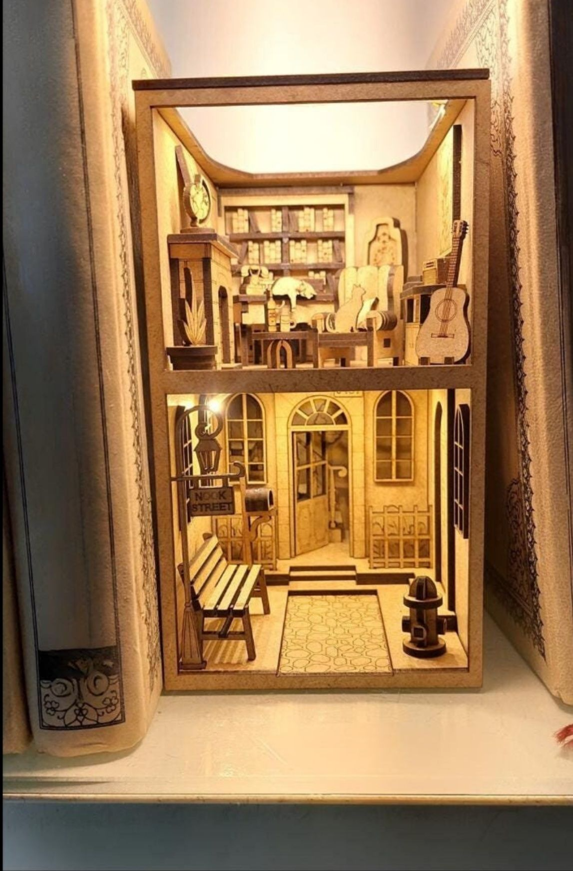 – pequenas maquetes arquitetônicas que se encaixam perfeitamente entre seus livros, criando cenas fascinantes e adicionando um toque de mistério e personalidade à sua coleção!